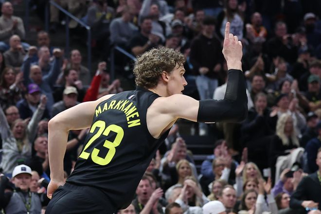 劳里·马尔卡宁上赛季在爵士队出战47场常规赛,场均亮相31.4分钟,贡献19分5.9篮板1.5助攻,三项命中率42.3%、34.6%和87.6%。尽管数据相比前赛季有所下滑,但他毫无疑问仍是NBA全明星级别的内线。