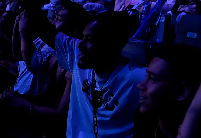 第二局开始前,场边镜头给到CBA外援威姆斯。在职业生涯中,威姆斯效力过广东、深圳等CBA球队,而总决赛的比赛场地,同时也是威姆斯效力的深圳队的主场。