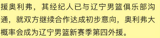 然而,辽篮基本上已经敲定的第四外援不仅还是CBA老熟人,而且同样也是上赛季在辽篮效力过的外援,没错,正是奥利弗。