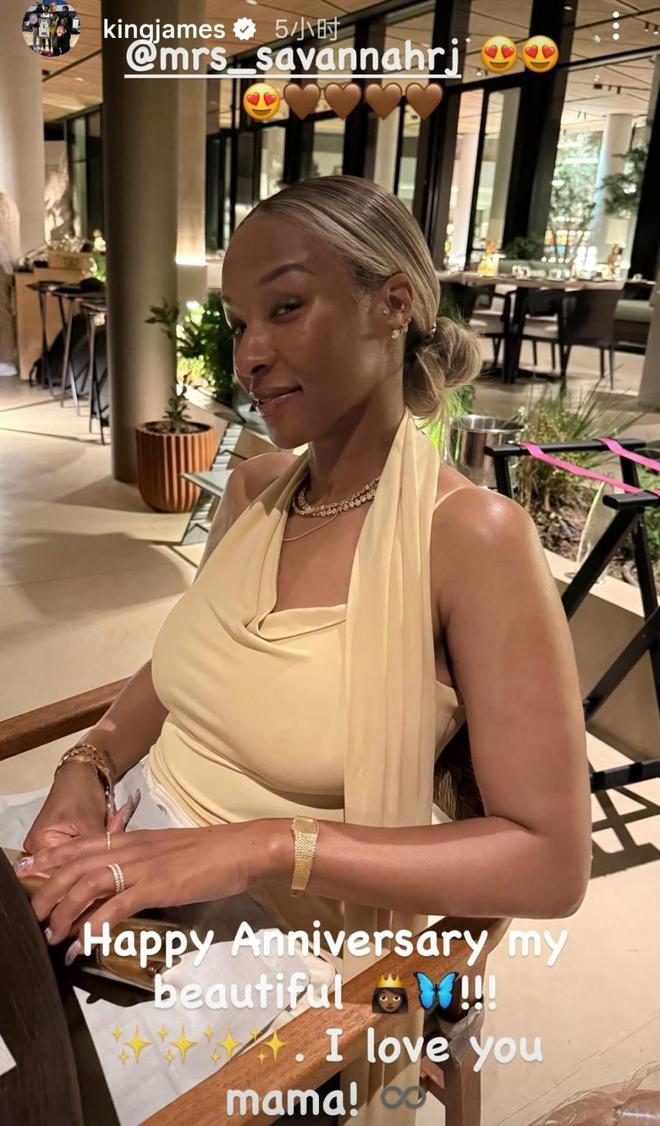 北京时间9月15日,湖人球星勒布朗-詹姆斯连续更新社媒,晒出自己贴在妻子萨瓦娜身边的视频以及照片,并配文写道:“纪念日快乐!我美丽的女王,我爱你,孩儿他妈!”