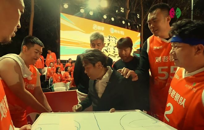 而已经宣布正式从辽篮退役的中锋韩德君,竟然在这场明星赛又复出了。他既当球员又当教练,不仅上场打比赛,还在暂停时抢过班门弄斧的主教练宋小宝手里的战术板画战术。