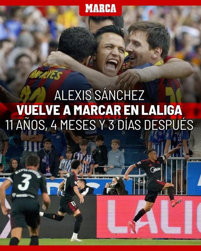 《马卡报》统计表明,桑切斯时隔11年4个月零3天再一次在西甲破门,他上一次在西甲进球是2013-14赛季代表巴萨攻破马竞球门。