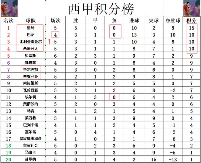 积分榜方面,皇马5战全胜,继续稳稳领跑,先赛的他们领先巴萨5分。西班牙人赛季首败,被比利亚雷亚尔以净胜球优势超过,黄潜则是差巴萨4个净胜球,暂时排在第3。毕尔巴鄂竞技遭遇2连败,排名再往下跌,排在第7,塞维利亚倒是追了上来,排在毕尔巴鄂竞技之后位列第8。