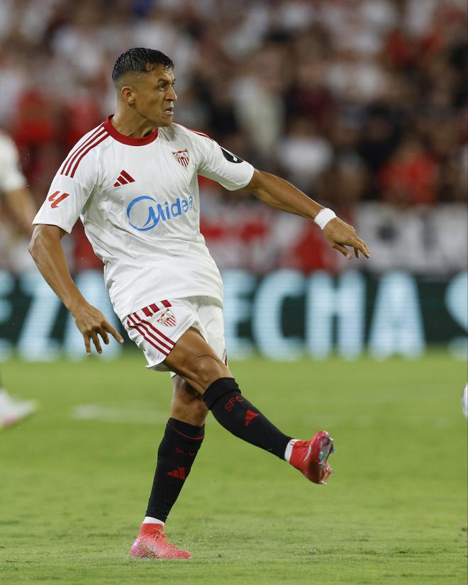雷速体育9月21日讯 在今日凌晨进行的西甲联赛第5轮,塞维利亚客场对阵阿拉维斯,比赛第67分钟,36岁老将亚历克西斯·桑切斯接队友传中抢点破门,打入回归西甲后首粒进球。