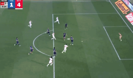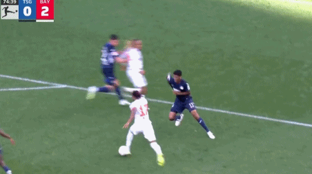 第81分钟,曹法尔主罚前场左侧任意球,基米希解围失误,球飞入球门,3比1!
