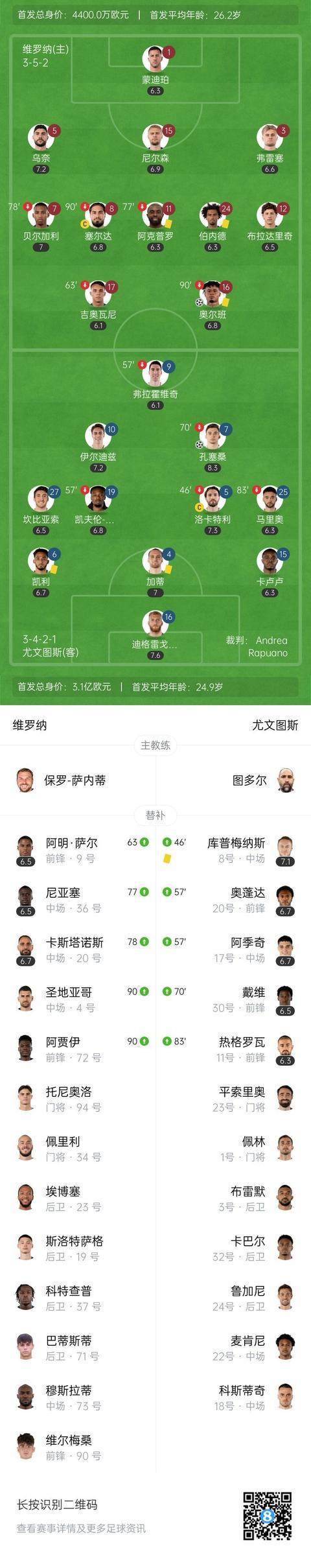全场比赛结束,尤文1-1维罗纳。