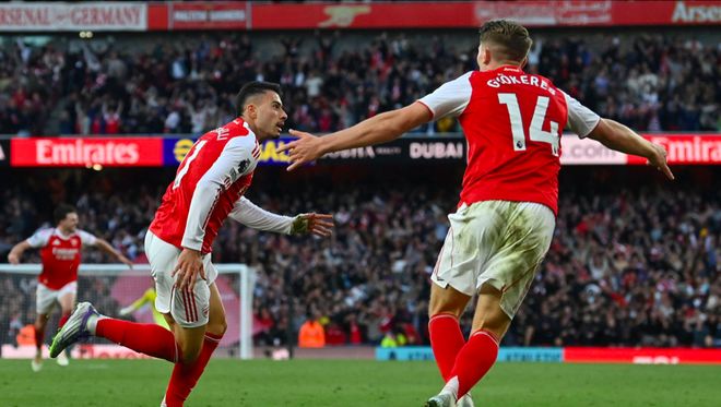 值得注意的是,周中的欧冠+周末的联赛,马丁内利加起来只出场了28分钟,就打进2球,送出1次助攻,帮助阿森纳抢回3分。