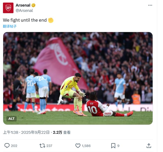 赛后阿森纳更新官推:“我们战斗到了最后一刻!”