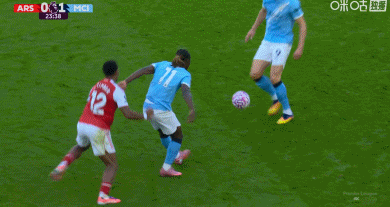 第36分钟,B席铲倒加布里埃尔,裁判出示黄牌