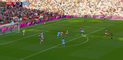 第20分钟,曼城前场抢断,随后赖因德斯的远射被拉亚扑住