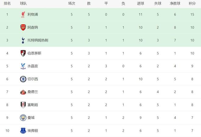 随着阿森纳1-1绝平曼城,利物浦2-1,英超积分榜:前两名相差5分