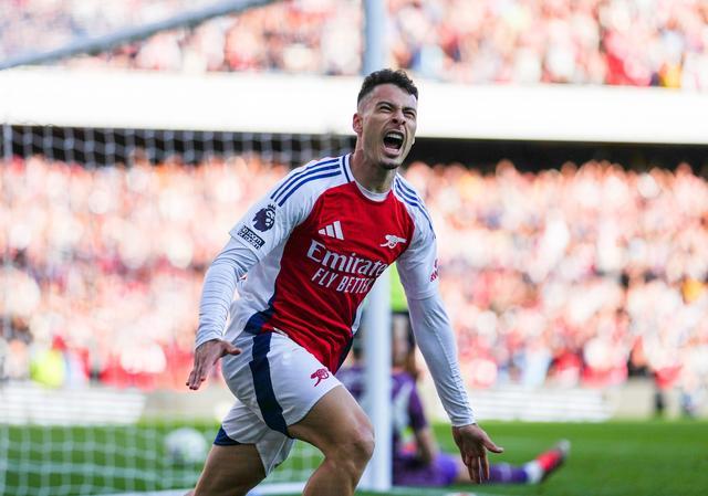 直播吧9月22日讯 英超第5轮比赛,阿森纳在酋长球场以1-1的比分战平曼城。本场比赛,马丁内利在补时阶段帮助主队扳平比分。