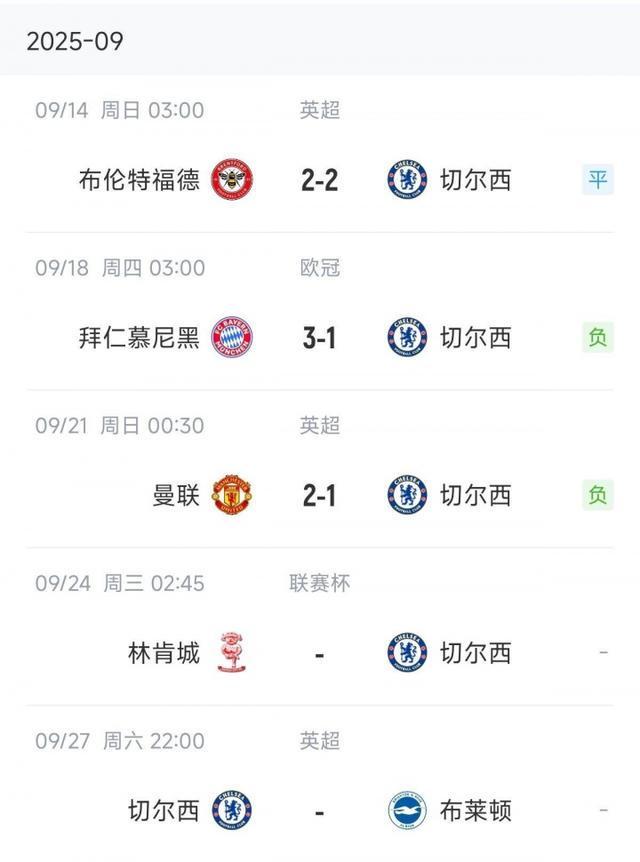 直播吧09月21日讯 英超第5轮,切尔西1-2不敌曼联,9月4连客暂时1胜难求2负1平。