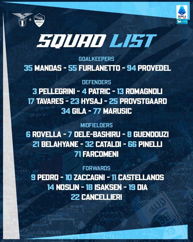 北京时间9月21日,拉齐奥公布了意甲第4轮罗马德比的大名单,帕特里克伤愈归队,贝西诺、拉扎里和吉戈等伤员继续缺阵。